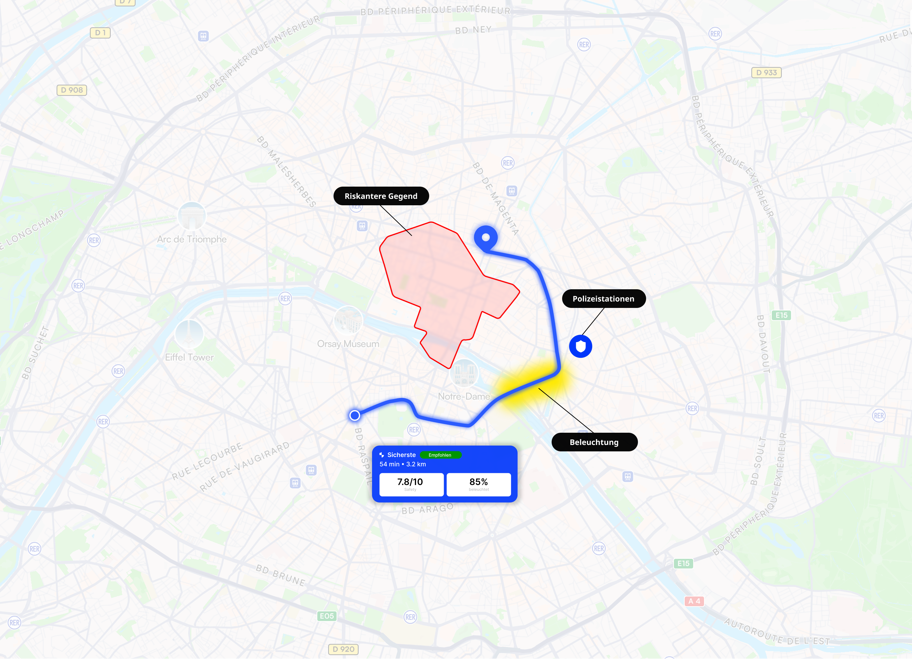 Deine sicherste Route finden