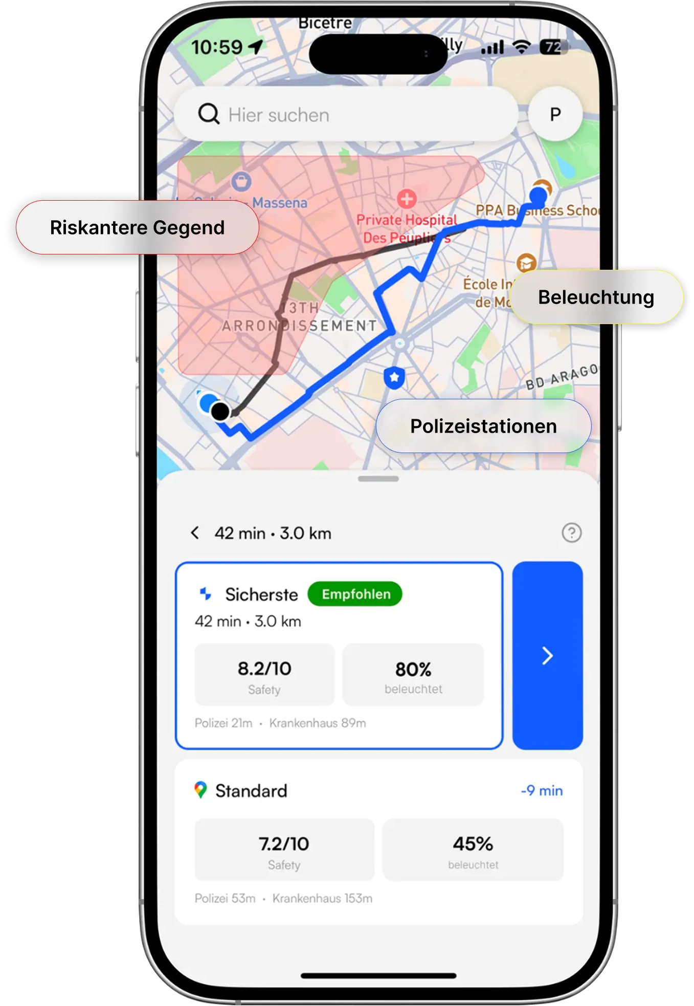 Die einzige App für Safety-First-Navigation